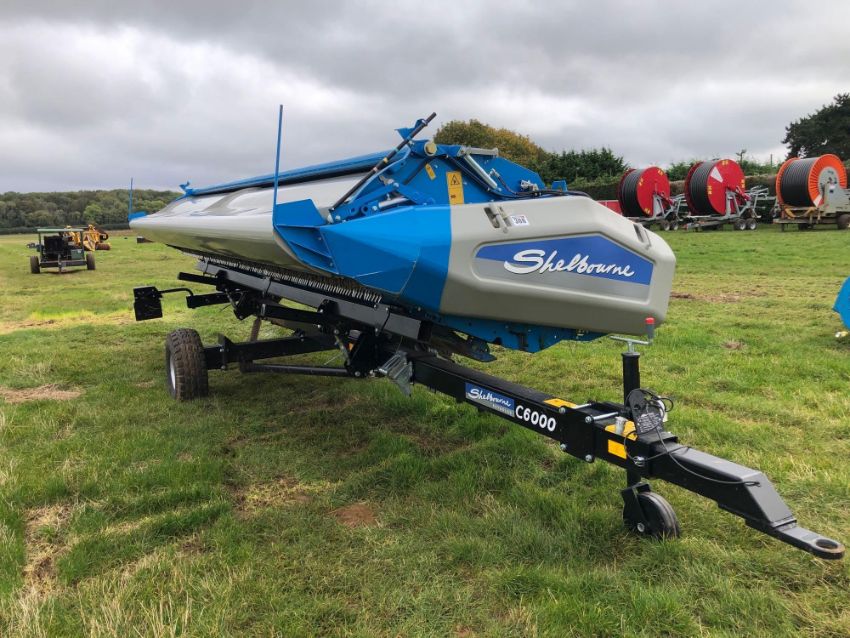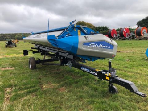 2021 Shelbourne Reynolds RSD20 6m stripper header with single axle header trailer c/w 9", 10", 11.5" and 13" gear pulleys. Threshing Hours: 69. Serial No: RSD20213718