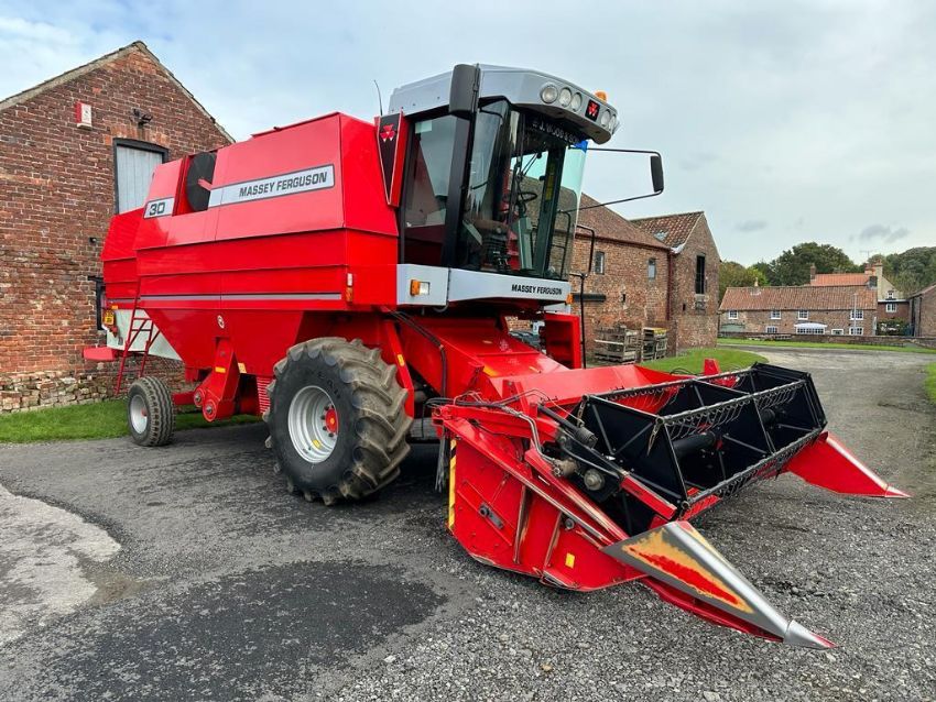 1998 Massey Ferguson 30 combine harvester with 12ft header, 5 straw walker, 5,200 litre grain tank capacity, on 620/75r26 front and 12.5/80-18 rear wheels and tyres. C/w spare knife and crop lifters. On farm from new with annual dealer service. Serial No: 55170 (combine) & 933630 (header). Engine: a 6.6l 6 cylinder 175hp, (due to replacement hours unknown). Drum Hours: 2,605. Hectarage: 2,777. Reg: S305 JRH