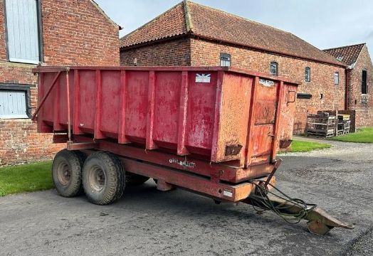 1981 Triffitt Trailers 6T High lift twin axle grain trailer, hydraulic tipping, self-opening rear door, manual chute on 12.5/80-15.3 wheels and tyres. Serial No: 1269