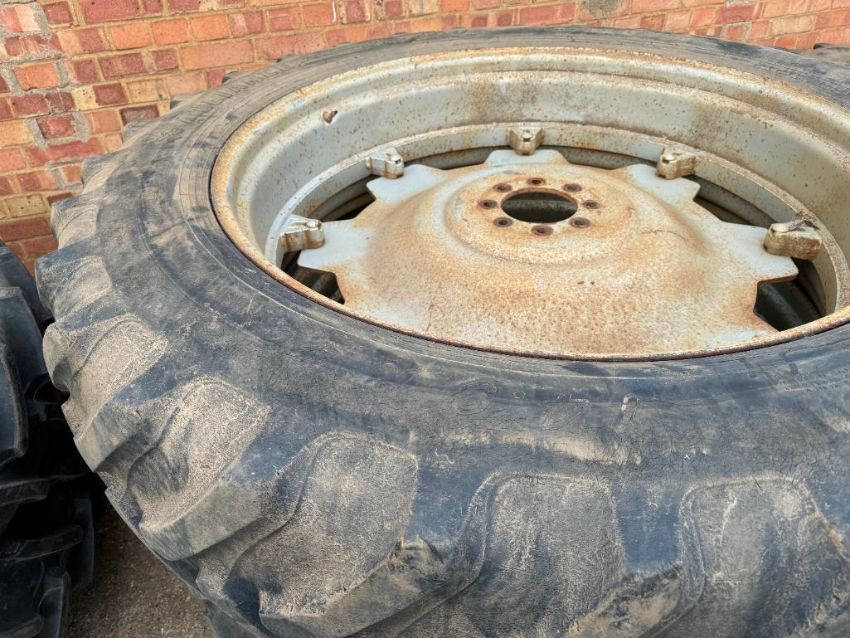 Set Alliance 14.9R46 rear and Alliance 11.2R36 front row crop wheels and tyres on Massey Ferguson centres