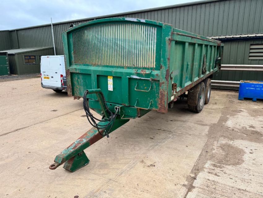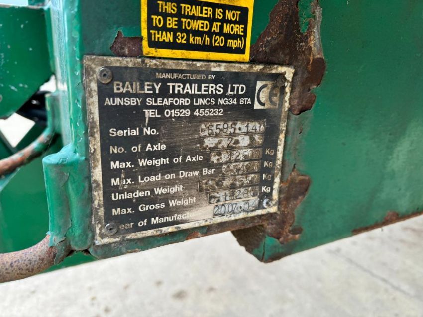 2007 Bailey 14t twin axle root trailer with sprung drawbar, rollover sheet, hydraulic tailgate and grain chute on 385/65R22.5 wheels and tyres. Serial No: 6595
