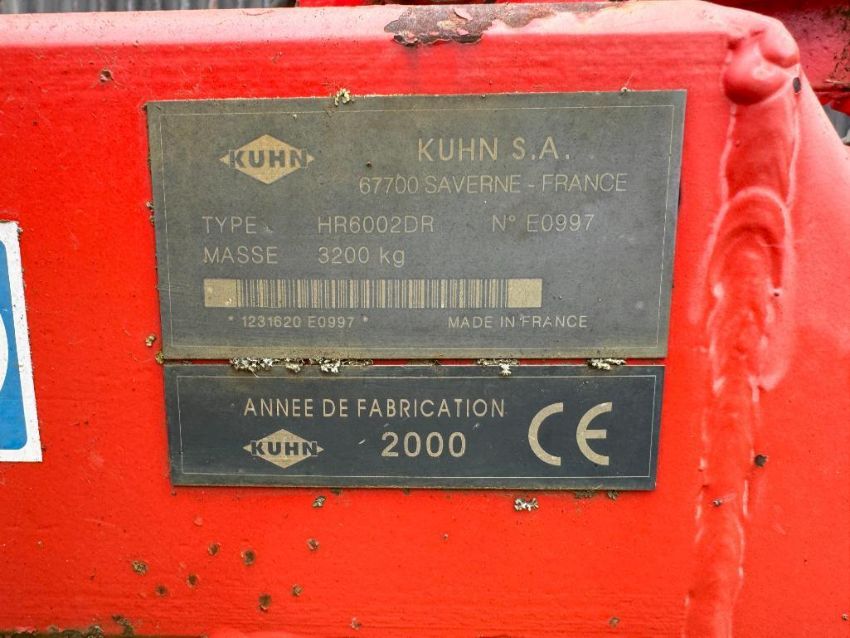 2000 Kuhn HR6002DR 6m hydraulic folding power harrow with rear tooth packer. Serial No: E0997