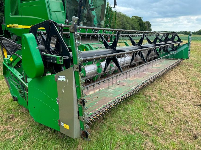 2007 John Deere 9780i CTS combine harvester, GPS ready with iTC dome, straw chopper c/w John Deere 25ft header and Zurn extension with rape knifes on Goodyear 900/55R32 front and Goodyear 600/65R28 rear wheels and tyres. Reg: FX07 FUD. Engine Hours: 2,656. Drum Hours: 2,053. Serial No: Z09780A080319. c/w Shelborne Reynolds C7500 twin axle header trolley