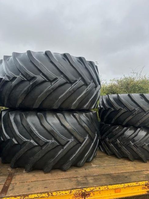 Set of Trelleborg 414 flotation tyres and wheels to fit Massey Ferguson 6499 similar. Front wheels 10 stud with Trelleborg 600 / 60 R30.5 used once 100 percent. Rear wheels 10 stud Trelleborg 850 / 55 R42 @15 percent. Tubeless.