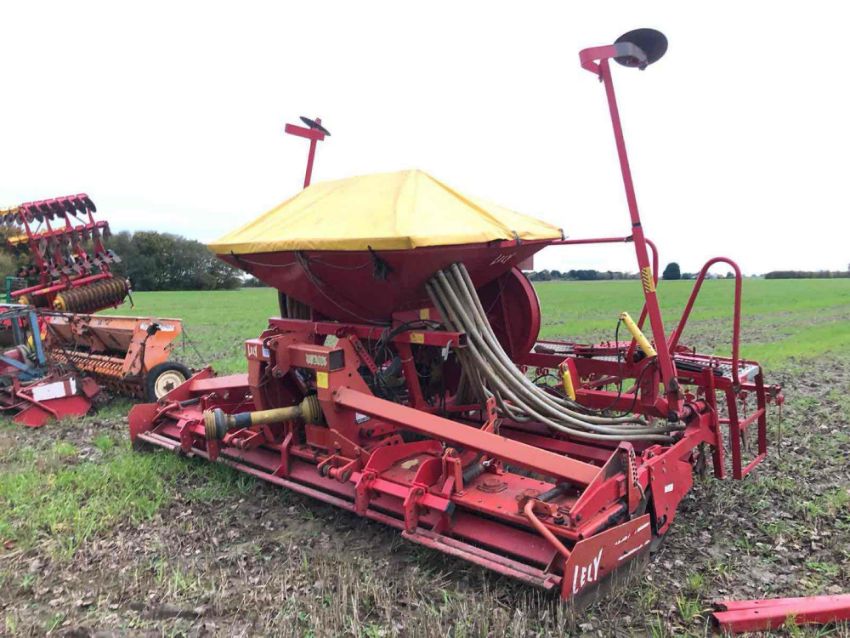 Lely 4m combination drill with Lely-Terra 400-45 4m power harrow with club tines and rear tooth packer and Lely drill with Suffolk coulters, bout markers and following tines