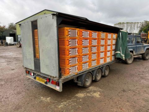 Ifor Williams tri axle LM146G3 flat bed trailer converted to poult trailer c70 crates. No VAT