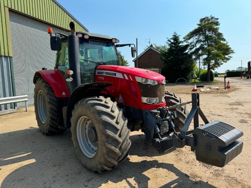 2018 Massey Ferguson 7718 Dyna-6 50kph 4wd tractor with front linkage, front and cab suspension, 2 electric and 2 manual spools and air brakes on Michelin 540/65R28 front and 650/65R38 rear wheels and tyres. Datatag Registered. Reg No: AE18 AWM. Hours: 2,854. Serial No: VKKMX72BPHB136045