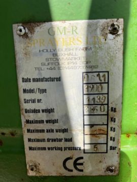 2011 GM-R 3200 Voyager Trailed 12/24M Sprayer, Three Nozzle Bodies, c/w Rowcrops 12.4 R46, Standard 460/65 R38 And Wide Tyres 600/55-38