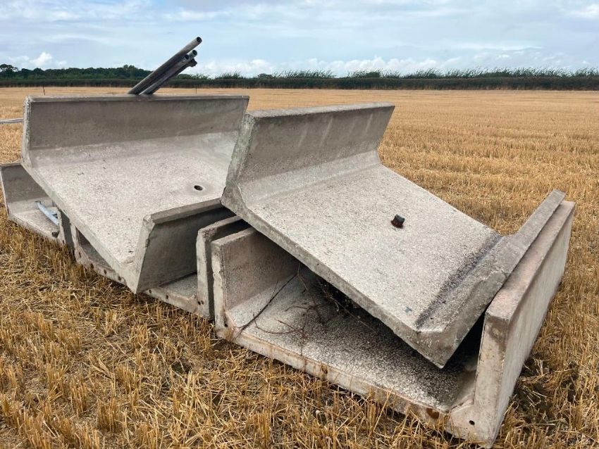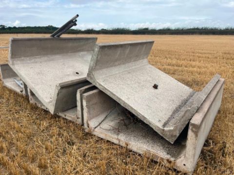 5No. Wolferden Double Width Concrete Feed Trough Sections. 2.4m X 1.7m. With Neck Rails And T-Bars