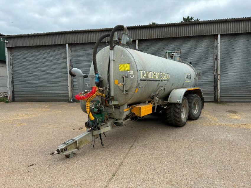 2015 Major Tandem 3500 twin axle 3,500gal vacuum tanker with side turbo fast filler, wide angle PTO, sprung drawbar, air brakes, converted rear door, rear steering axle on 560/60R22.5 wheels and tyres, sold with original door. Serial No: HR13670