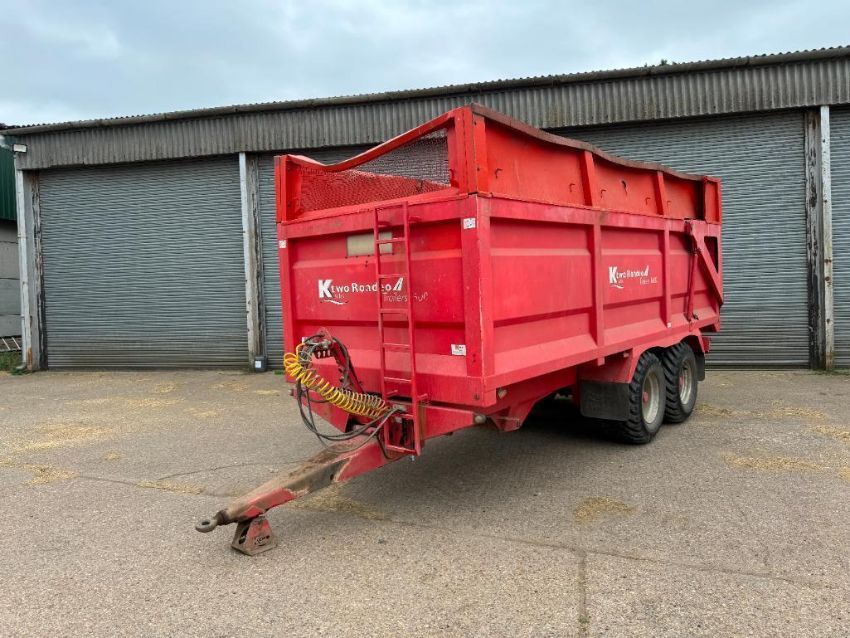 1997 K-Two 1600 16t twin axle grain trailer with air brakes, sprung drawbar, hydraulic tailgate and grain chute on CEAT 550/45R22.5 wheels and tyres, sold with silage side extensions. Serial No: K2T0610161997