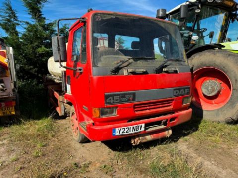 2001 DAF 45/150 diesel tanker with 5,000l tank split 2,000l / 3,000l compartments, retractable hose and Neptune pump on 215/75R17.5 wheels and tyres. Reg No: Y221 NBV. Km: 74,770. NB: registered for limited use (agricultural)