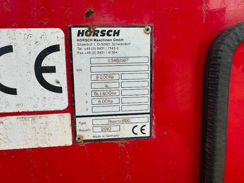 2010 Horsch Simba Pronto 6DC disc drill with wheel track eradicators, bout and tramline markers to be sold with complete set of wearing metal. Serial No: 23482187