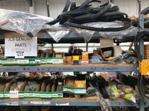 Qty of genuine JCB loadall spares - Example of lot content includes; motor starters, light bar, shock absorber, switches, suction tube, hose bottom, cable bonnet release. See photographs for more lot content information.