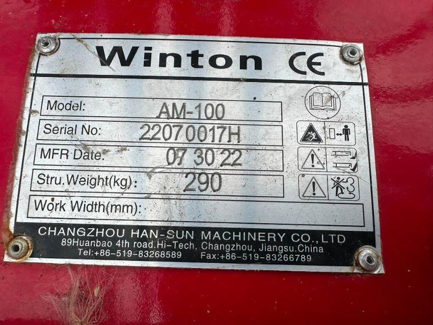2022 Winton AM-100 direct linkage mounted compact flail hedgecutter with cable control. Serial No:22070017H (unused)