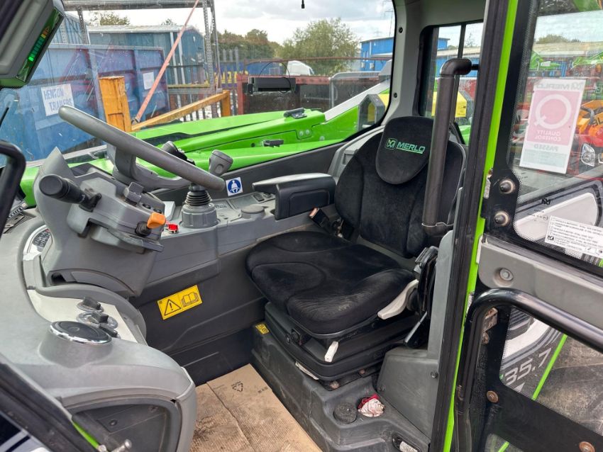 2022 Merlo TF35.7-140 Telehandler, 4WS, air seat, air conditioning, Ad-blue, rear pick up hitch, rear camera. C/w Merlo headstock with hydraulic locking pin and pallet tines. On 460/70R24 wheels and tyres. Serial No: ZF1F50MG4D200034.PME. Reg: DX22 AHP. Hours: 2,390. Keys in the office. V5 in the office.