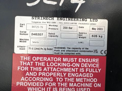 2023 Strimech BKT25-76 2.34m3 bucket on Merlo brackets. Serial no: 246207