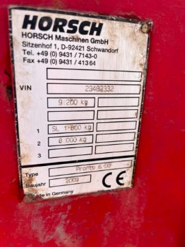 2009 Simba Horsch Pronto 6 DC, Serial No. 23482332 (Drilled Circa 10,000 Ha). Comes With Qty. Spares