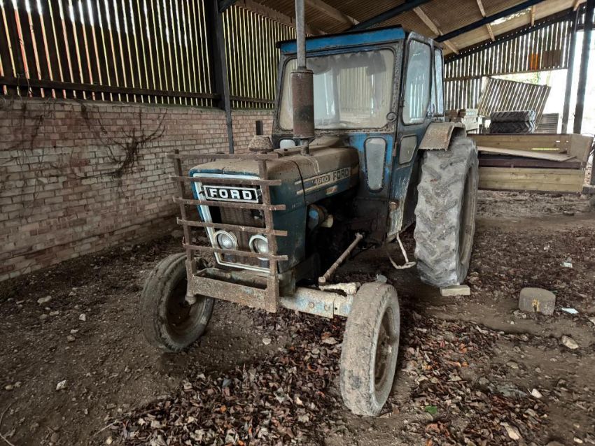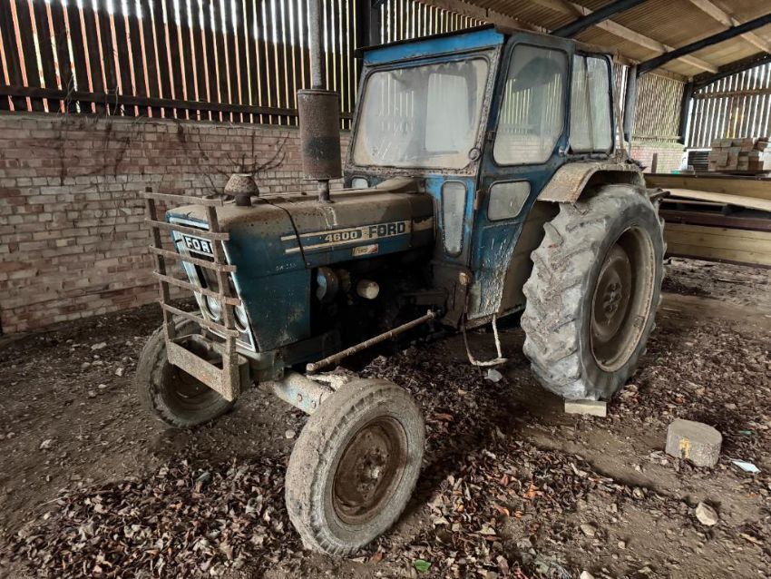 1976 Ford 4600 2wd tractor with rear PTO, hydraulics and linkage on 7.50-16 front and 13.6-36 rear wheels and tyres. Reg: NFW 689P. Hours 1,147 (showing). Serial No: 966218