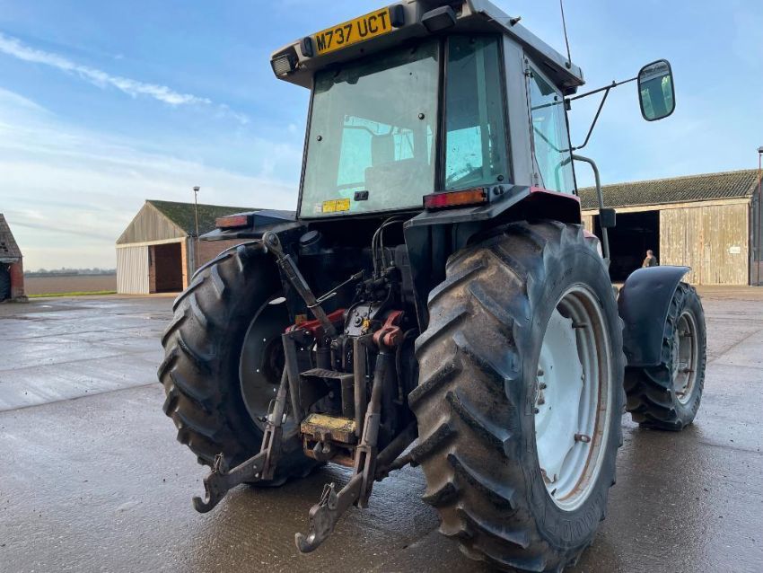 1995 Massey Ferguson 3095 Dynashift Autotronic 4wd tractor, 2No manual spools, PTO and rear linkage, 8No 15kg wafer weights on 340/85R28 front and 16.9R38 rear wheels and tyres. Reg: M737 UCT. Hours 14,163. Serial No: C308040