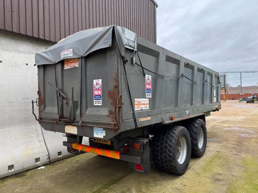 1993 Ken Wootton 15t twin axle grain trailer with sprung drawbar, air brakes, hydraulic rollover sheet, manual tailgate and grain chute on 560/45R22.5 wheels and tyres. Serial No: 14.3999 (Grey)