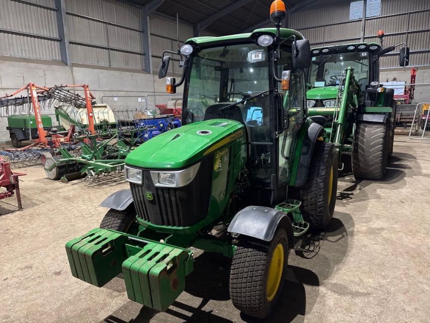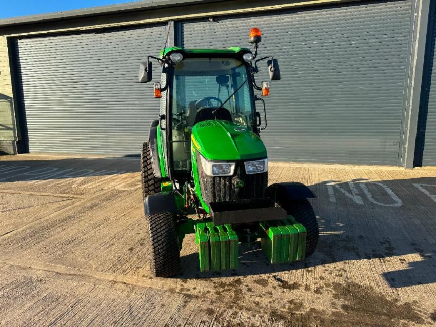 2022 John Deere 4066R hydrostatic 4wd compact tractor with front loader brackets and services, 8No front wafer weights, 3No manual spools, top link on 27x10.50-15 front and 44 x 18.00-20 rear wheels and turf tyres. Datatag Registered. Reg: AY72 XUX. Hours: 554. Serial No: 1LDV4066RKMN503877
