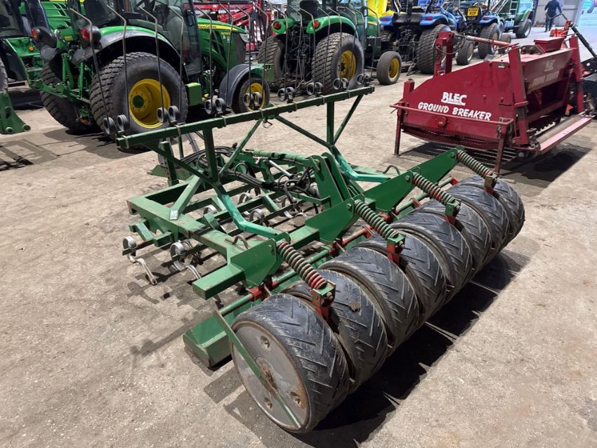 Farm made 2m levelling harrow with leading springtines, levelling blade, rear tyre packer and levelling tines, trailed