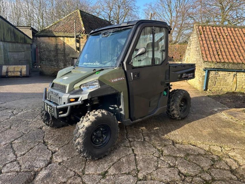 2018 Polaris Ranger 1000. Diesel, fully enclosed cab, seatbelt, winch, cab heater, manual tipping back, tow ball. On nearly new tyres. Reg: AE68 DWX. Miles: 4,992. Hours: 1,133. Manual and owners pack available in office. V5 available in office.