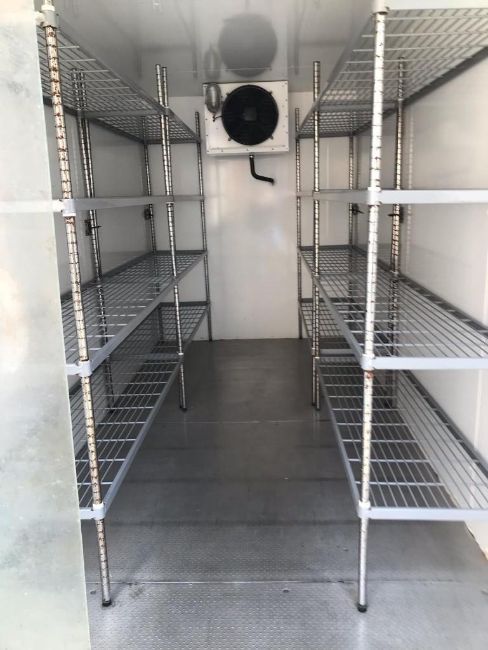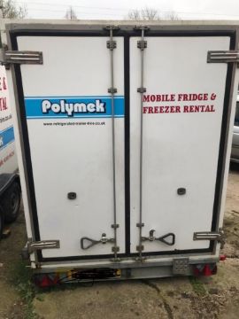 Schlegl GmbH 4m Fridge Freezer Trailer w/ 12 Cubic Metres Internal Capacity, Can Be used As Fridge Or Freezer (Minimum Temp -19 Degrees), Internal Shelving w/ Removable Shelves, Door Curtains, Internal Light, Heavy Duty Jockey Wheel, Lockable Back Door, Plugs To 13amp Or 16amp