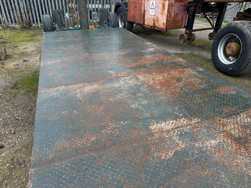 David Moreton Engineering hydraulic drop flat plant trailer. 6.3m x 2.5m. Serial No: 1121