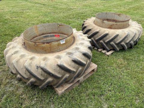 Pair Stocks 20.8R38 dual wheels and tyres