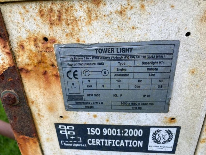 Towerlight VT-1 lighting tower with Kubota 10KVA 4 cyclinder generator. Spares or Repairs. (Buckinghamshire) (No VAT)