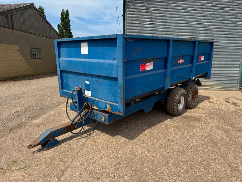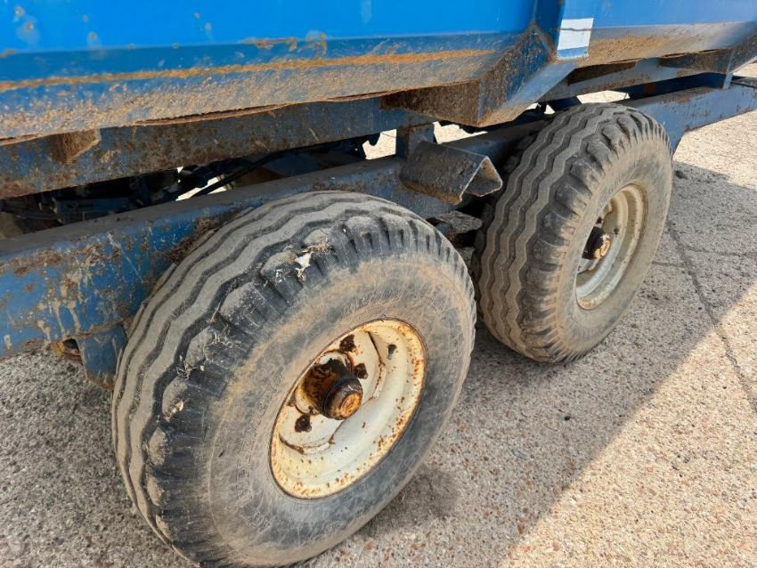 1985 AS Marston FF10L 10t grain trailer with fixed drawbar, manual tailgate and grain chute, twin axle on 12.5/80-15.3 wheels and tyres. Serial No: 102016
