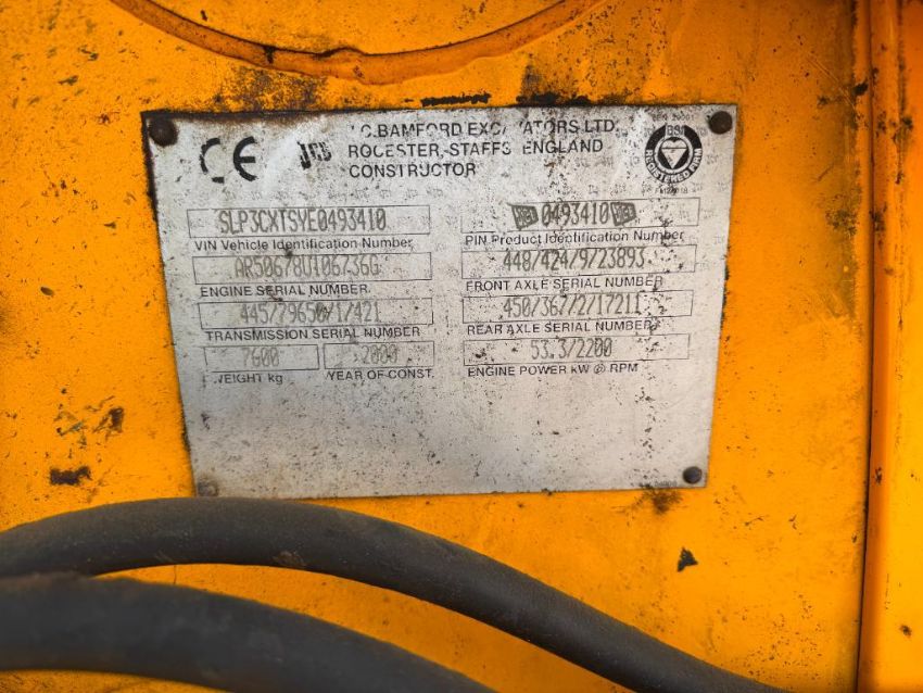 2000 JCB 3CX Sitemaster 4x4 Smoothride with 3in1 bucket on 12.5/80-18 front and 18.4/15-26 rear wheels and tyres c/w additional 2No 5ft ditching buckets, 15", 16" and 21", 3ft and 4ft digging buckets. Reg: X816 EMJ. Hours: Unknown. Serial No: SLP3CXTSYE0493410