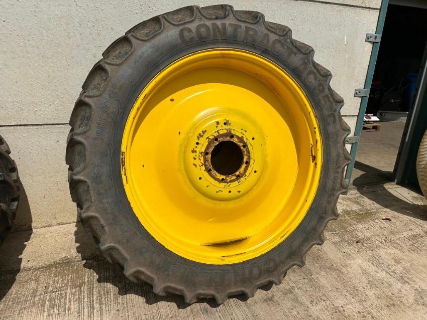 Full set of row crop wheels, 320/90R32 10 stud front and 340/85R48 8 stud rear wheels and tyres, suited to John Deere 6930