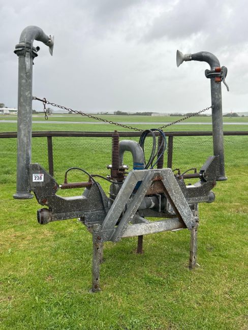 Galvanised c.9m spreading bar with 2No Bauer spreading plates, hydraulic sluices and 4" inlet, hydraulic folding, linkage mounted