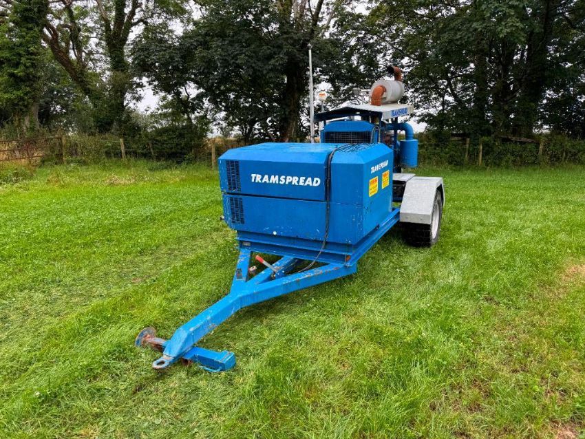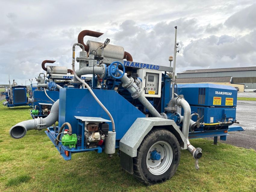 Tramspread EDPU single axle trailed slurry pump with 6 cylinder John Deere engine, Ferrari slurry pump with 6" inlet and 4" outlet, Honda petrol engine prime, Krohne flow meter, Tramspread Vision IV-S screen and Ingersoll Rand mounted compressor. Compressor Hours: 840. Pump Hours: 971