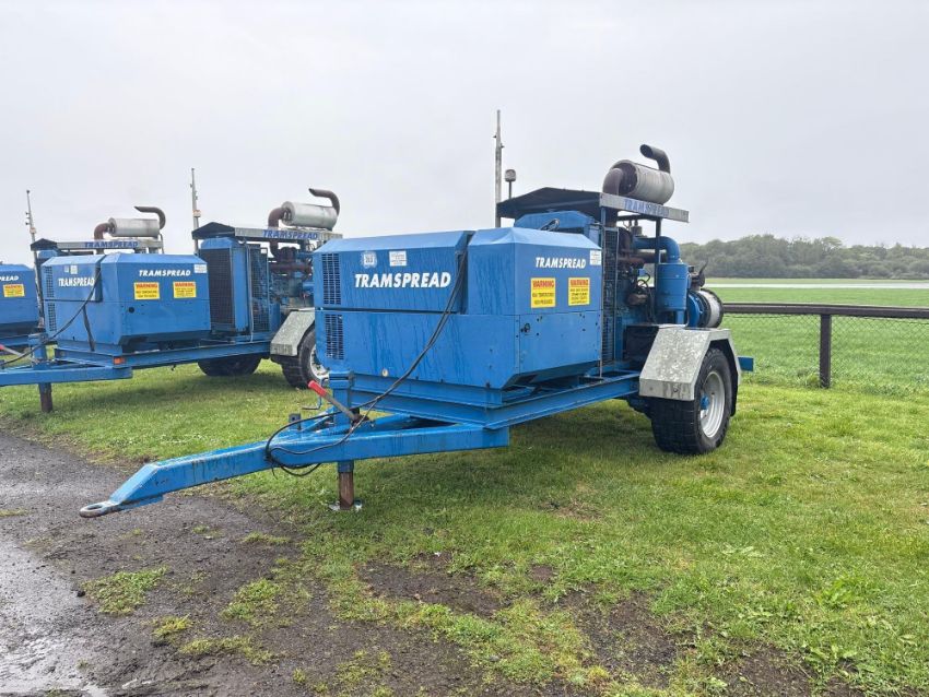 Tramspread EDPU single axle trailed slurry pump with 6 cylinder John Deere engine, Doda slurry pump with 6" inlet and 4" outlet, Honda petrol engine prime, Krohne flow meter, Tramspread Vision IV-S screen and Ingersoll Rand mounted compressor. Compressor Hours: 1,437. Pump Hours: 3,723