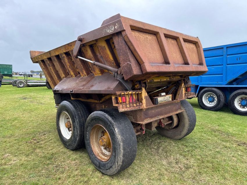 2002 Tudor Trailers 10t twin axle dump trailer with sprung drawbar, hydraulic tailgate and grain chute on 385/65R22.5 wheels and tyres
