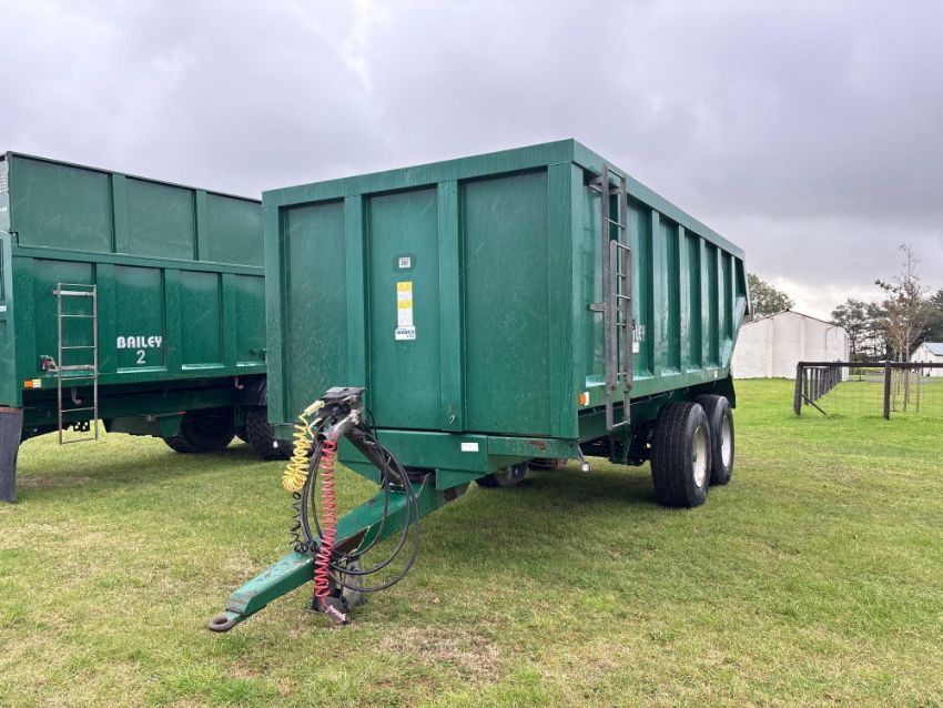 2016 Bailey 14t twin axle dump trailer with sprung drawbar, air brakes, WABCO LSV on 385/65R22.5 wheels and tyres. Serial No: 15927-14T