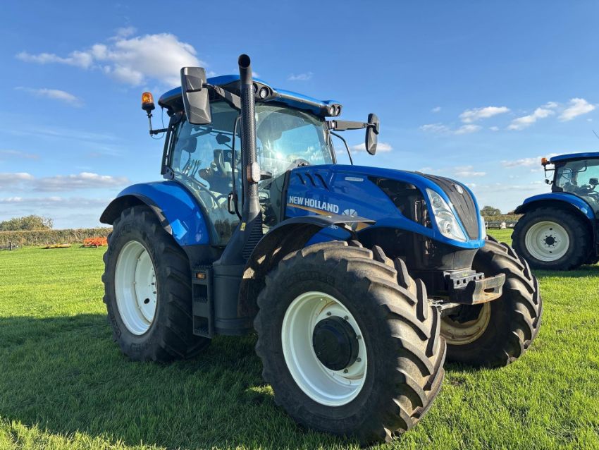 2023 New Holland T6.180 Dynamic Command 50kph 4wd tractor with front axle and cab suspension, air brakes, 4No manual spools, passenger seat and pickup hitch. Reg: OY23 UUZ. Hours: 1569. Tyres: Front: 540/65 R28. Rear: 650/65 R38. Serial No: 2019858. Warranty: Until 10/07/2026 or 3000 hours. N.B. manual and V5 in the office