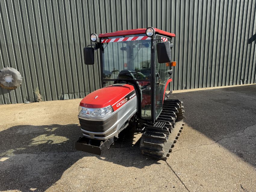 2013 Mitsubishi GCR22 16" rubber tracked crawler, with 22hp diesel engine, rear linkage and PTO. Hours: 71. To be sold with SKLP 9 row precision planter with 150mm row spacing. Serial No: BZJ9240511