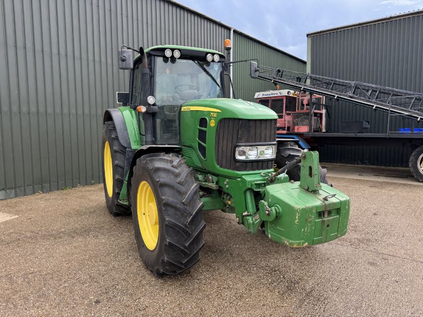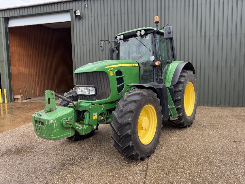 2008 John Deere 7530 Premium 50kph AutoQuad 4wd tractor with Zuidberg front linkage, front and cab suspension, 4No return spools, air brakes on Mitas 420/85R30 front and Vredestein 520/85R42 rear wheels and tyres. Reg: YJ08 HNX. Hours: 10,749. Serial No: L07530N550353