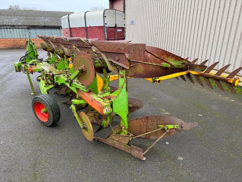 1999 Dowdeswell DP100S MA 5 furrow (4+1) reversible plough with skimmers, hydraulic vari-width with Claydon furrow cracker. Serial No: 99MA36252