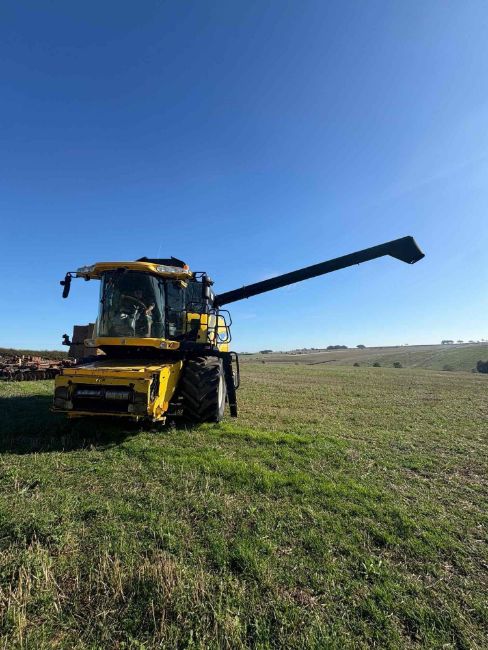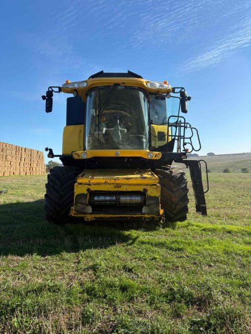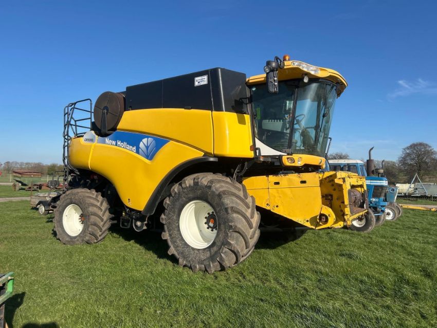 2007 New Holland CR9080 combine harvester with 30ft varifeed header on 900/60R32 front and 600/65-R28 wheels and tyres. Reg No: FX07 NXE. Engine Hours: 2673. Drum Hours: 1966
