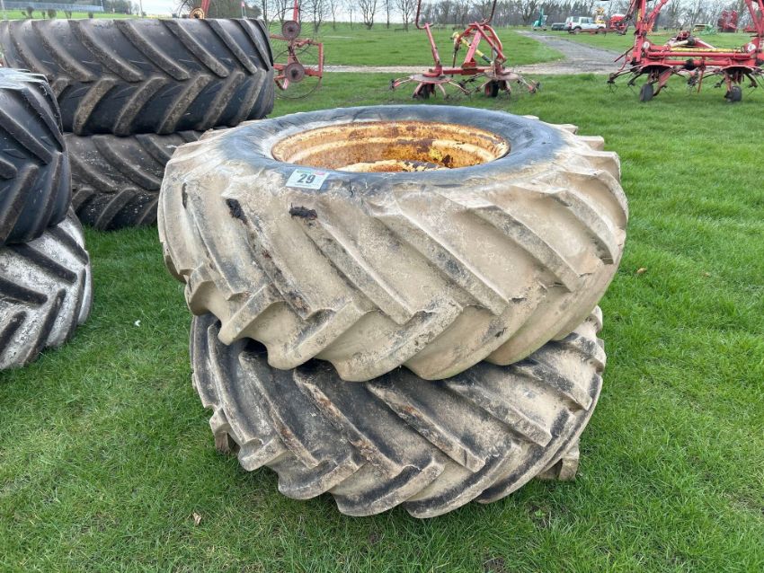 Pair Goodyear 18.4/15-26, 8 stud wheels and tyres