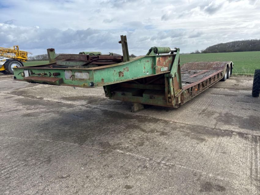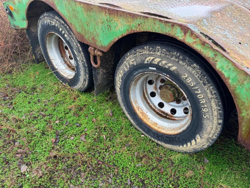 Taskers swan neck trailer, 19ft bed, hydraulic detachable neck, rear twin axle on 285/70R19.5 wheels and tyres. Serial No: 790538/8