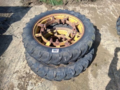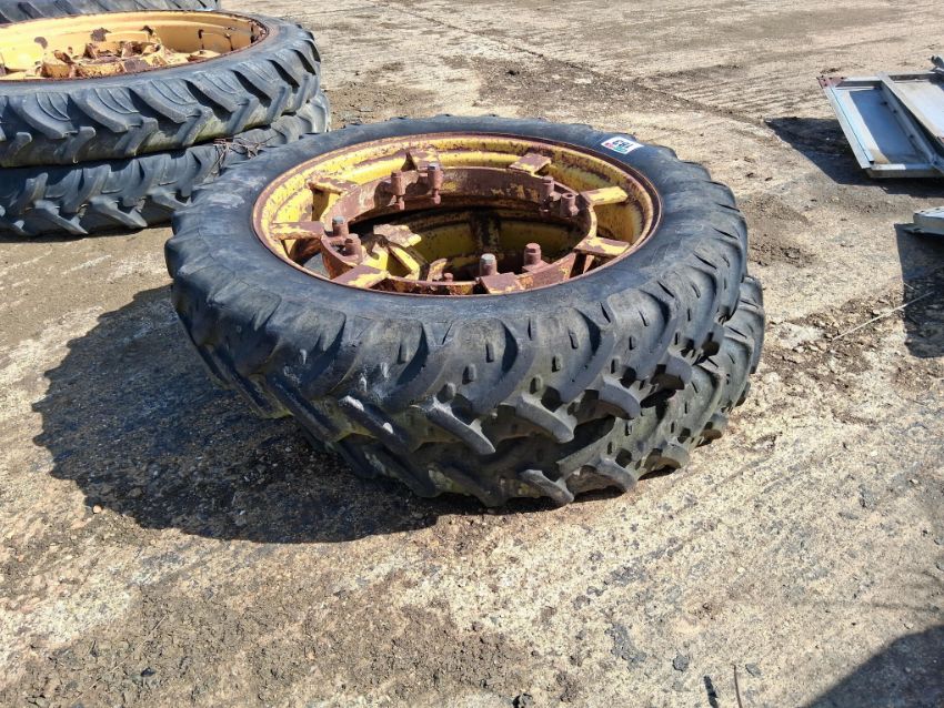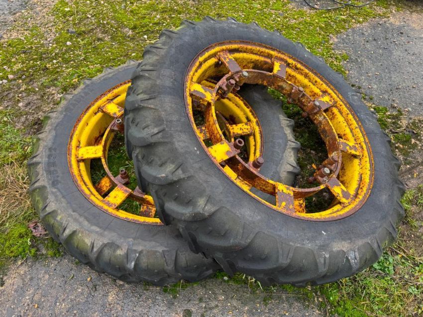 Pair Kleber 9.5R32 front row crop wheels and tyres, no centres