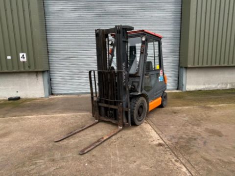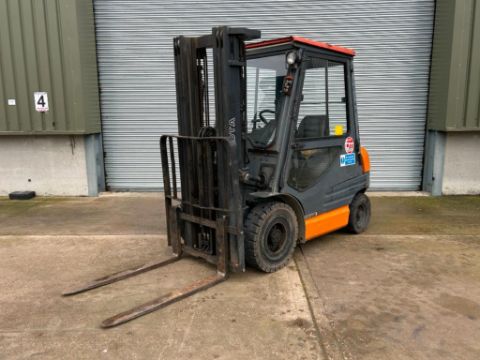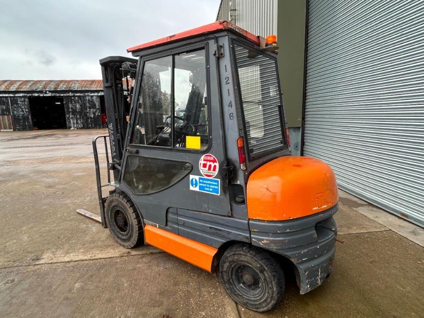 1999 Toyota O2-6FDF25 2.5t diesel forklift, 4700mm lift height, no side shift with pallet tines. Hours: Unknown. Serial No: 1999F7112