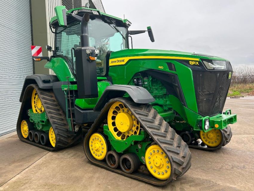 2022 John Deere 8RX 410, Signature Edition, 40kph, 5No electric spools, hydraulic top link, 24" front track and 30" rear track, wide track conversion, Integrated Starfire Dome, RTK unlocked. Datatag Registered. Reg No: OV72 XOR. Hours: 1,475. Serial No: X1RW8410DHN80432S. Extendable warranty until 12.10.2027 or 3,750hours. Maintance plan can be continued subject to monthly payment until September 2027. 1,500hr service completed 28.01.26.